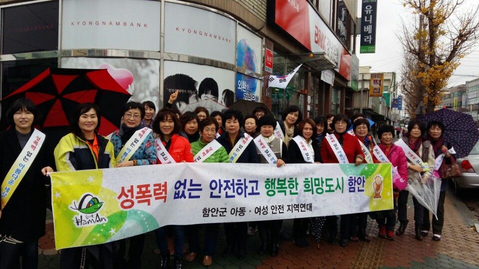 함안군(군수 차정섭)은 지난 25일 가야읍 경남은행 앞에서 여성단체협의회 마을지킴이 단원, 유관기관, 아동·여성 지역연대 실무사례협의회 등 40여 명이 참여한 가운데 ‘성폭력 추방 캠페인’을 펼쳤다.