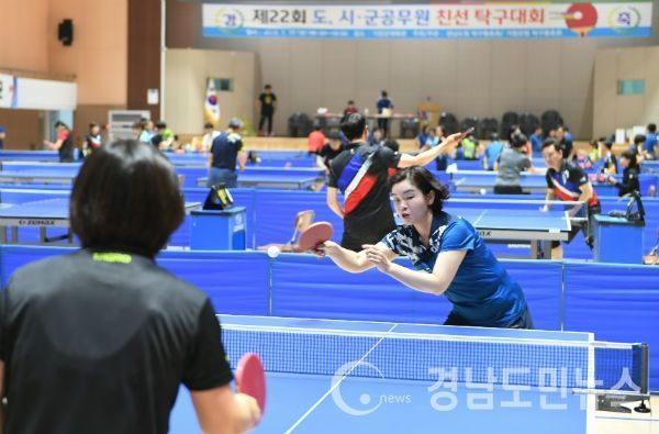 (경남도민뉴스) = 경남도청과 거창군청 탁구동호회가 주최, 주관한 제22회 경남도와 시·군 공무원 탁구대회가 지난 25일 거창군체육관에서 19개팀 200여 명이 참석한 가운데 개최됐다.