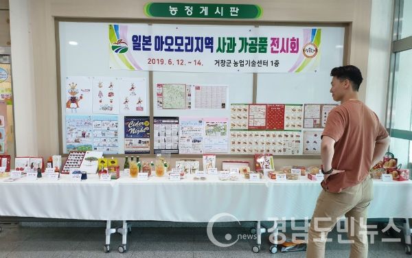 이번 전시회는 지난달 거창사과농촌융복합산업화 신규지구 조성을 위한 일본 아오모리 사과지역 연수를 통해 현지에서 구입해온 다양한 사과 가공제품을 관심있는 농가에 소개하기 위해 마련됐다.