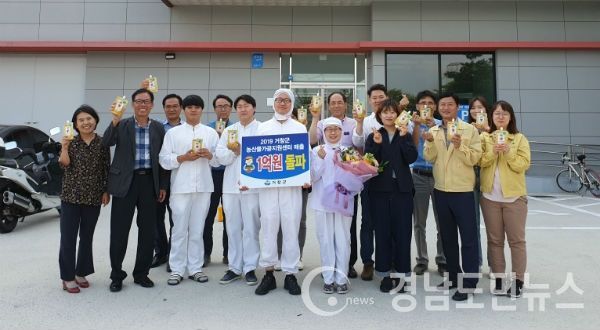 (경남도민뉴스) = 거창군 농산물가공지원센터는 지난 20일자로 농산물가공품 판매가 기준 1억 원을 돌파한 녹림농원 대표 김덕홍씨를 만나 격려했다.