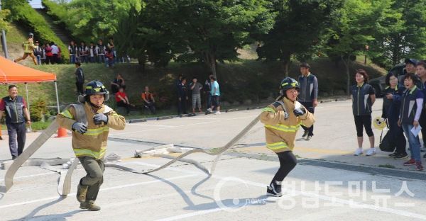 이날 대회에는 대회사 및 축사, 격려사, 선수대표 선서 등을 시작으로 재난현장대응능력 강화를 위한 △소방호스 끌기, △소방호스 연장 및 방수 △개인장비장착 릴레이 3개 종목 경기를 진행하였으며 의용소방대원들의 친목을 위한 장기자랑을 통해 상호 간 화합을 다지는 뜻깊은 시간을 보냈다.