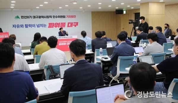 대구광역시장직 인수위원회는 6.27.(월) 14:00, 대구콘텐츠비즈니스센터(102호, 가온홀)에서 조직혁신, 인적쇄신, 책임행정, 전문가 영입, 재정혁신 등을 골자로 하는 시정혁신 8대 과제를 발표한다.