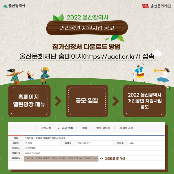 [경남도민뉴스] 울산문화재단에서는 거리공연 예술단체 및 예술가에게 지역내 시민들과 직접적으로 소통할 수 있는 예술활동의 장을 마련하고, 시민의 문화접근성을 높여 풍요로운 문화생활을 즐길 수 있도록 거리공연 지원사업을 진행하고 있다.