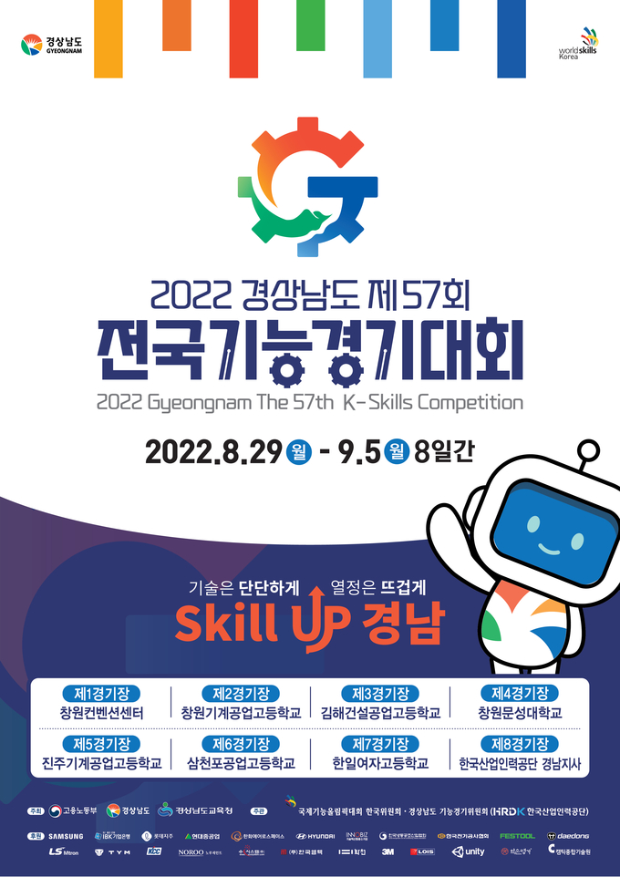 [경남도민뉴스] 숙련기술인들의 꿈의 무대인 ‘2022 경상남도 제57회 전국기능경기대회’가 ‘기술은 단단하게 열정은 뜨겁게 Skill up 경남’이라는 슬로건 아래 8월 29일부터 9월 5일까지 8일간 창원컨벤션센터 등 8개 경기장에서 개최된다.