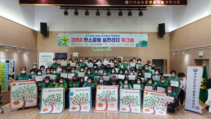 경남새마을회는 그동안 탄소중립 실현을 위해 지난 4월부터 나무심기운동을 실시하여 58,000여 그루의 나무를 식재하였으며 새마을 줍깅데이를 비롯한 탄소중립 캠페인을 실시하는 한편,녹색경남을 만들기 위해 폐현수막 재탄생·재활용센터를 도내 14개소에서 운영하고 있으며, 시군별 공동체 시범마을 18개소를 선정하여 마을주민들을 대상으로 탄소중립에 대한 이론강의와 폐자원 리싸이클링 활용 등 체험교육을 실시하고 있다.