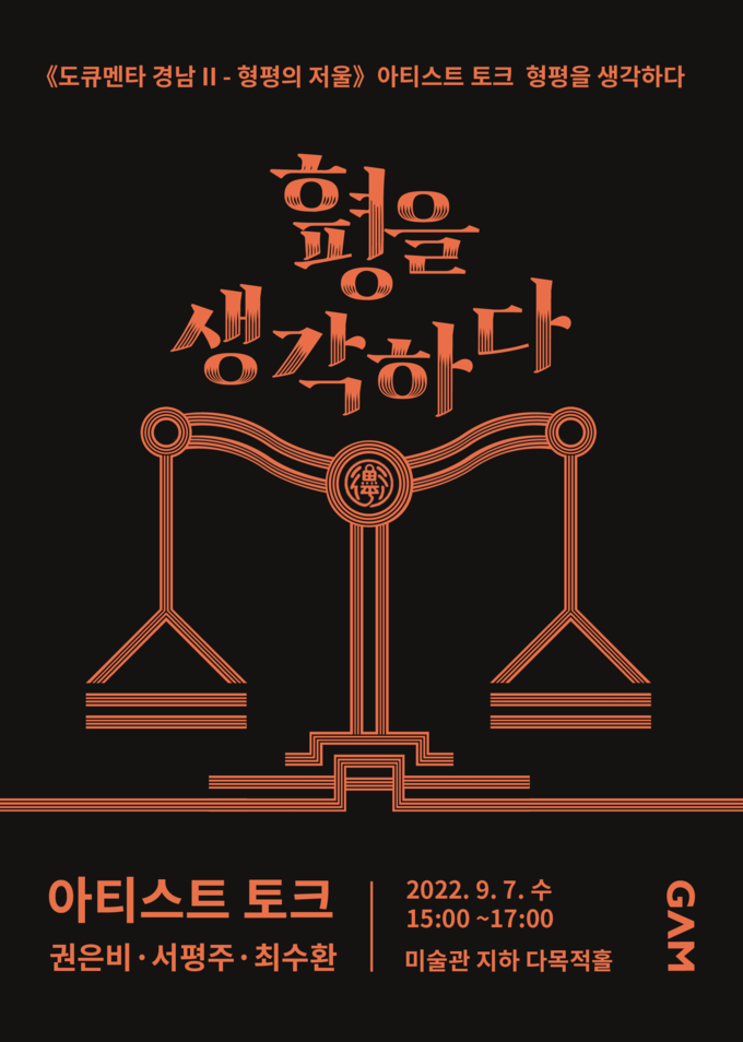 [경남도민뉴스] 경남도립미술관(관장 김종원)은 오는 9월 7일 지하 1층 다목적홀에서《도큐멘타 경남 II – 형평의 저울》전시 연계 아티스트 토크 「형평을 생각하다」를 개최한다.