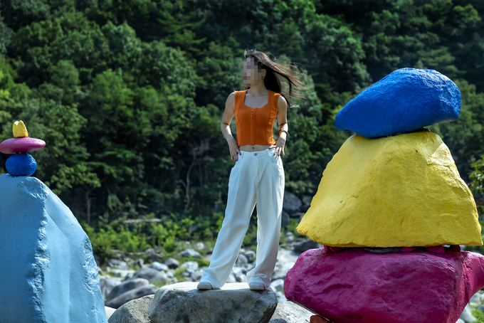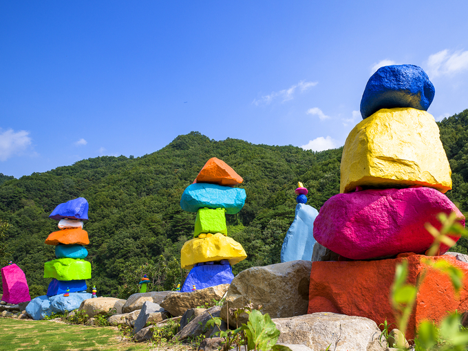 [경남도민뉴스] 합천군 대병면 성리 1348번지 합천호 따라 올라가다보면 평학마을 하천주변 한국 최초로 바위에 색을 입힌 이색적인 곳 소개한다.