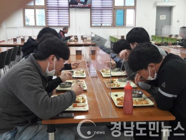 산청군은 코로나19 예방과 확산 방지를 위해 금서제2농공단지복지관 공동식당에 투명 칸막이를 설치했다고 1일 밝혔다.