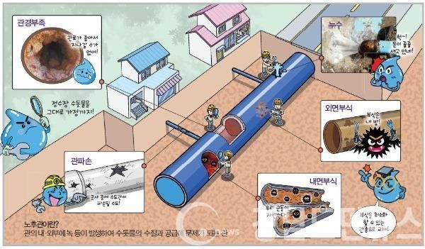군은 한국환경공단과 올해 1월부터 73억원의 사업비를 들여 2022년 말까지 계량기와 급배수관 등 약 36.2㎞ 규모의 노후시설을 교체·정비하고 있다.