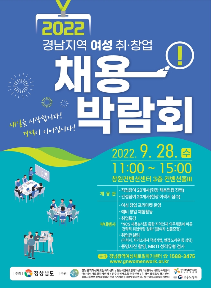 [경남도민뉴스] 경상남도(도지사 박완수)는 도내 여성 취·창업 활성화를 위해 9월 28일 ‘2022년 경남지역 여성 취·창업 채용박람회’를 개최한다.
