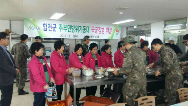 연말을 맞아 읍․면 주부민방위대장으로 구성된 회원들은 떡국 등을 직접 요리하여 고향의 어머니처럼 따뜻한 마음으로 장병들에게 식사를 대접하여 오늘 하루만이라도 즐겁고 맛있게 먹을 수 있도록 훈훈한 정을 베풀었다.