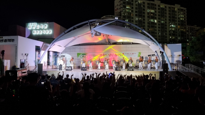 ‘가을을 남기고 간 사랑’, ‘가을 우체국 앞에서’로 가을을 물들이는 선율에 짙은 감성의 색소폰 연주가 가을밤을 수놓았고, 민요가수 황인아는 ‘얼씨구 절씨구’, ‘열두달이 좋아’라는 밝고 신나는 노래로 마산음악관 야외무대를 장식했다. 다음은 최신 트렌드의 트로트곡인 ‘테스형’, ‘찐이야’를 굵고 짙은 색소폰 연주로 관람객들을 감동시켰고, 끝으로 우리 지역 명가수 배진아의 ‘숨어 우는 바람소리’, ‘아버지의 기침소리’ 의 아름다운 선율로 저물어가는 가을밤의 정취를 더했다.
