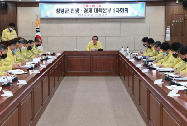 한정우 군수는 경제적으로 어려움을 겪고 있는 지역주민과 기업, 소상공인 등에 대한 군 실정에 맞는 체계적이고 종합적인 지원정책을 수립·관리하기 위해 창녕군 민생·경제대책본부를 4월 1일부로 구성하고, 6일 첫 회의를 시작으로 본격 가동했다.