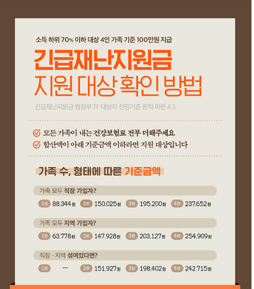 ▣ 합산액이 아래 기준금액 이하라면 지원 대상입니다.