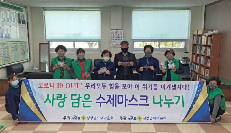 이날 산청새마을부녀회는 어린이집 12곳, 500여명의 어린이와 직원들에게 수제 마스크를 전달했다.