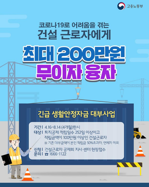 - 대상 : 퇴직공제 적립일수 252일 이상이고 적립금액이 100만원 이상인 건설근로자