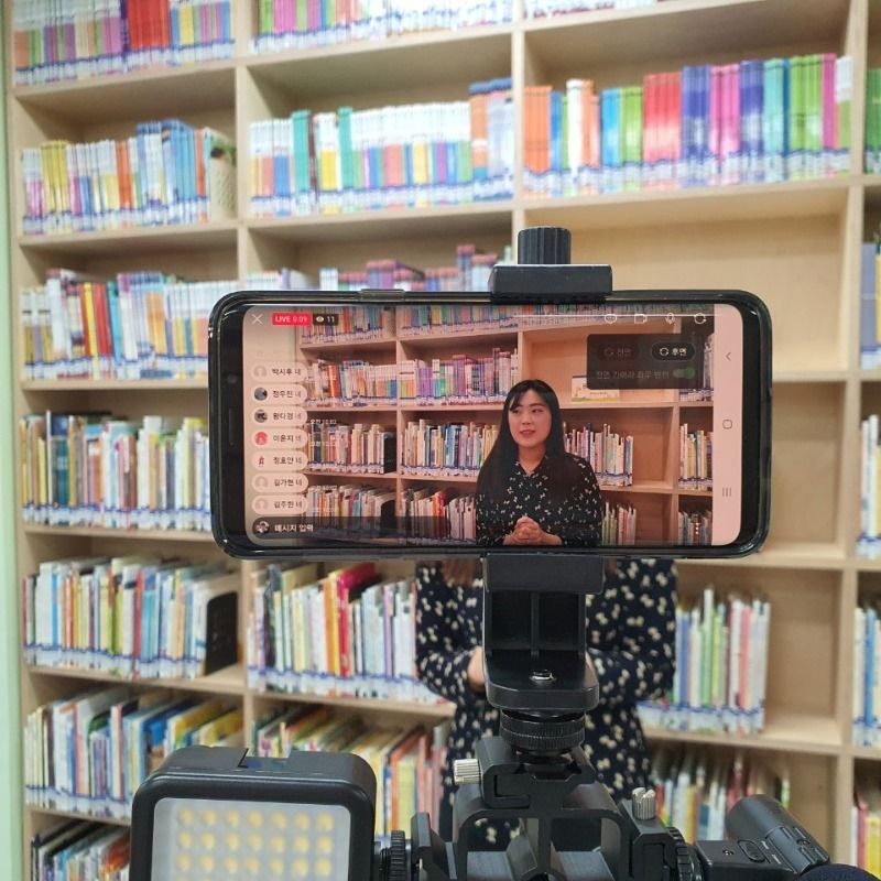 사서선생님이 진행하는 도서관 라이브 방송은 등교를 하지 못하는 학생들에게 학교의 다양한 모습과 교육활동 등을 제공하고 있다.