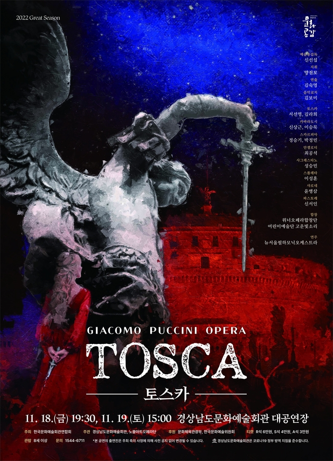오페라 ‘토스카’와 관련된 자세한 내용은 경남문화예술회관 전화(☎1544-6711)과 누리집(artcenter.gyeongnam.go.kr)으로 확인할 수 있다.
