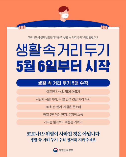 따라서 우리 모두 생활 속에서 거리두기를 계속 철저히 지켜야합니다.