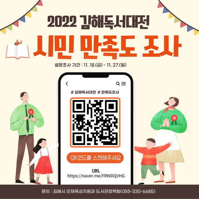 [경남도민뉴스] 김해시(시장 홍태용)는 18일부터 27일까지‘김해독서대전’만족도 조사를 실시한다.