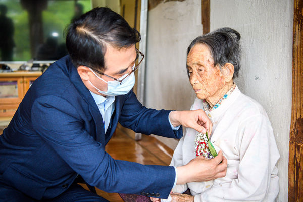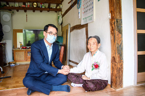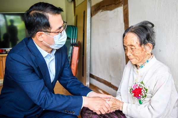 지난 8일 어버이날을 맞아 장충남 남해군수가 군내 100세 이상 장수 어르신들의 가정을 찾아 카네이션을 달아드렸다.