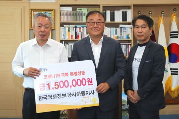 하동군은 한국국토정보공사 하동지사(지사장 김영민)가 지난 7일 군수 집무실을 찾아 코로나19 극복을 위한 온누리상품권 150만원을 기탁했다고 11일 밝혔다.