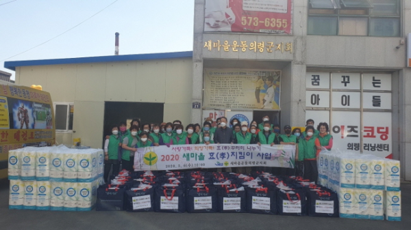 이번 행사에서 새마을 회원 44명이 70세 이상 어르신 65명(읍․면별 5명)의 가정을 방문하여 생필품 및 식료품 등 9종류의 물품(1가구당 약 7만원 상당)을 담은‘효 꾸러미’가방을 전달하였고, 코로나19 감염예방수칙의 철저한 준수 하에 행사를 진행하였다.