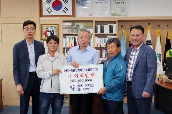 (재)하동군장학재단(이사장 이양호)은 횡천(회장 조명안)·청암(회장 정희균) 청학골 취나물작목반 임원진이 지난 13일 군수 집무실을 찾아 장학기금 200만원을 기탁했다고 14일 밝혔다.