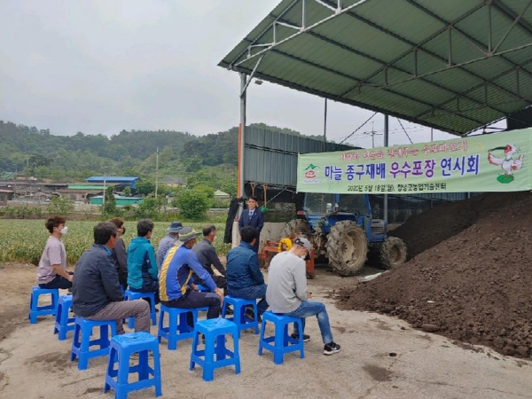 이번 연시회는 종구 공급농가를 대상으로 선도농가(유어면 양진율씨) 포장의 우량 씨마늘 생산기술을 공유함으로써 우량종구 생산기술체계 정립하기 위하여 마련되었다.
