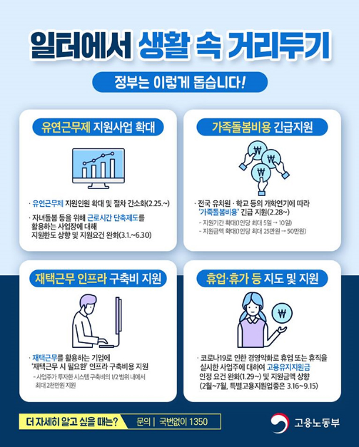 • 전국 유치원·학교 등의 개학 연기에 따라 ‘가족돌봄비용’ 긴급 지원(2.28~)