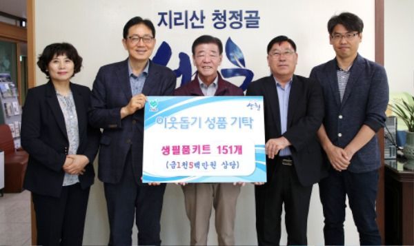 사회복지법인 한일복지재단(대표이사 김영태)가 20일 산청군을 찾아 지역 내 취약계층을 위해 써 달라며 1500만원 상당의 생필품키트 151개를 전달했다.