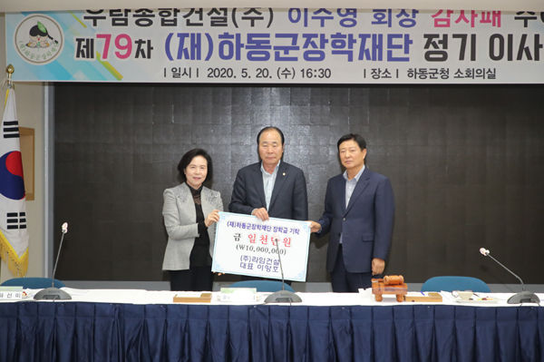윤상기 군수는 “하동군장학재단의 든든한 버팀목인 이양호 이사장이 거액의 장학기금까지 내 주심에 감사드린다”며 “알프스 하동의 인재들이 더 큰 꿈을 향해 미래로 나아갈 수 있도록 지원을 아끼지 않겠다”고 밝혔다.