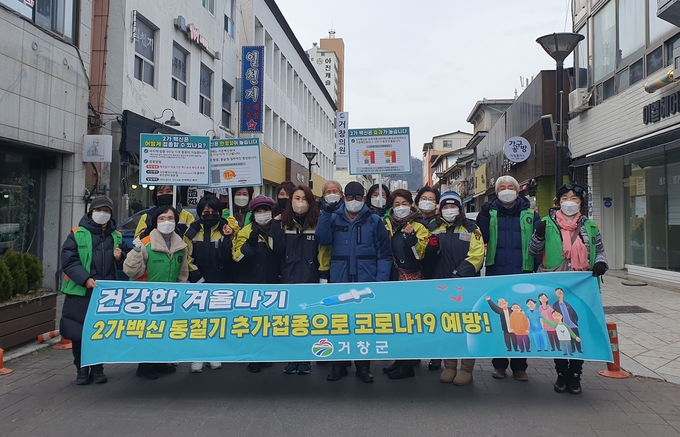 [경남도민뉴스] 거창군은 지난 16일 거창읍 일원에서 지역자율방재단(단장 이현우) 단원과 의용소방대연합회(연합회장 마호운) 대원 등 20여 명이 참여하여 동절기 코로나19 백신 추가접종 제고를 위한 캠페인을 추진했다.