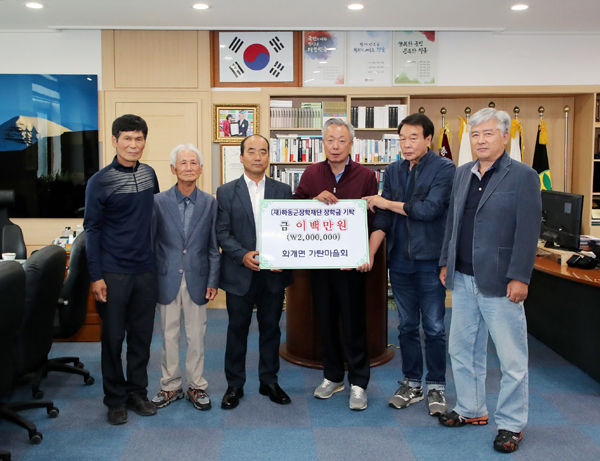 (재)하동군장학재단(이사장 이양호)은 화개면 가탄마을(이장 심윤섭) 지도자들이 지난 25일 군수 집무실을 찾아 장학기금 200만원을 기탁했다고 26일 밝혔다.