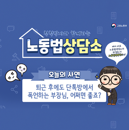 부장님은 퇴근 후 술에 취해 단톡방에서 하소연 글을 올리고, 왜 대답이 없냐고 팀원들을 힘들게 합니다. 본인 의지대로 안 되면 직원들에게 소리를 지르고 윽박지르는 등의 행동도 서슴지 않아 일하기 괴롭습니다.