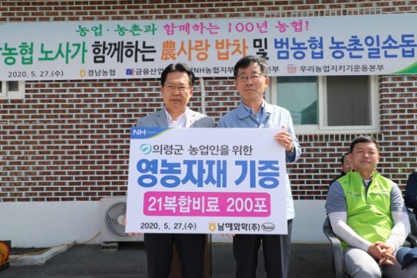 의령군(군수권한대행 신정민)은 27일 유곡면 세간마을에서 경남농협 주관 노사가 함께하는 농사랑 밥차 행사를 실시했다.