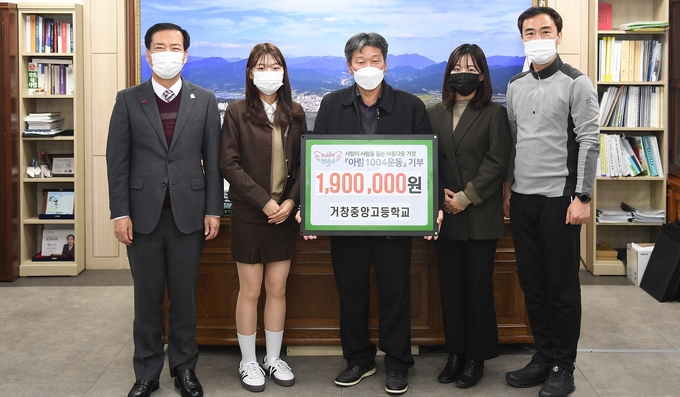 [경남도민뉴스] 거창군은 지난 26일 아림1004 후원금으로 거창중앙고등학교(교장 구교훈)가 190만원, 창남초등학교(교장 김보권)가 117만8520원, 신원 과정마을 사회적 협동조합(회장 김영길)과 거창군딸기연합회(회장 이일도), 거창군 참사랑회가 각각 100만4000원을 기탁했다고 전했다.