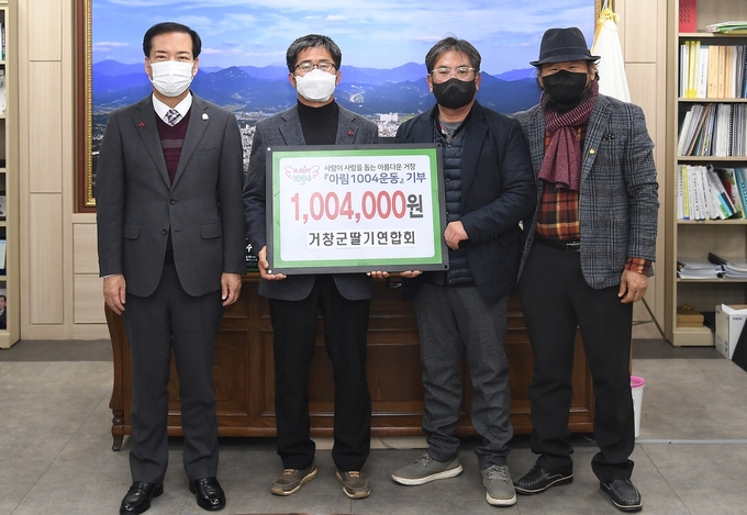 거창군 참사랑회는 2018년에 만든 개인 모임이며 조금씩 기금을 모아 어려운 이웃을 위해 사용해 오다가 2021년 말 이웃돕기 성금으로 100만원을 기탁한데 이어 올해는 박병규, 김도연, 이용직, 이동화씨가 직접 군청을 방문하여 아림1004 후원금을 기탁했다.