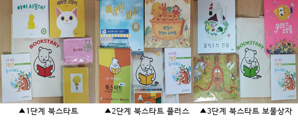 책 꾸러미는 0세부터 취학 전까지 △북스타트(출생∼18개월) △북스타트 플러스(19개월∼35개월) △북스타트 보물상자(36개월∼취학 전)로 단계별로 준비돼 있다.