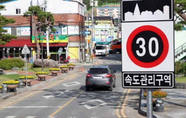 군은 산청읍과 신안면 도심지의 주요 간선·이면도로 차량속도를 기존 시속 60㎞와 40㎞에서 50㎞와 30㎞로 하향 제한하는 ‘안전속도 5030’ 표지판을 설치했다. 또 산청읍 부리에서 진주방향 3번국도 진입로에 신호등을 신설했다.