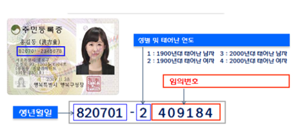 이에 따라 오는 10월부터 주민등록번호를 신규로 부여받거나 변경하는 경우 뒷자리는 성별 표시 첫 자리를 제외하고 6자리의 임의번호를 부여받게 된다.