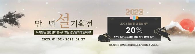 [경남도민뉴스] 경상남도(도지사 박완수)는 민족 고유의 명절 설을 맞아 도민의 장바구니 부담 완화 및 소상공인 온라인 판로개척 지원을 위해 이번 달 31일까지 e경남몰(egnmall.kr)에서 다양한 설맞이 기획전을 실시한다고 밝혔다.