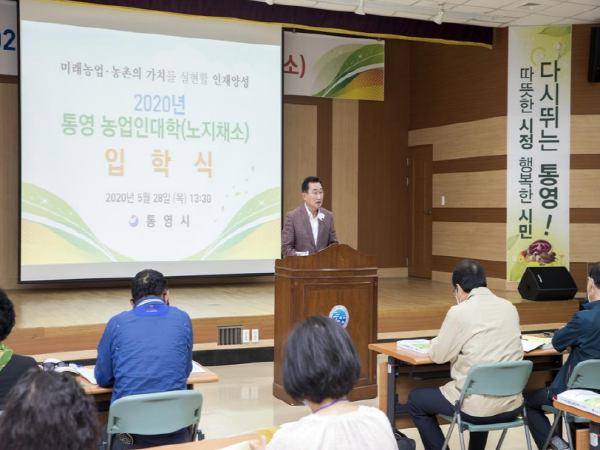 통영 농업인대학 학장(시장 강석주)은“농업에 닥친 위기는 우리 농업인들에게 부단한 전문기술 습득과 함께 창의력과 경쟁력 강화를 요구하고 있다.며 이번 배움의 시간을 통해 농업의 혁신과 경쟁력을 선도해 가는 든든한 전문농업인으로 성장해 주길 기대한다.”고 말했다.