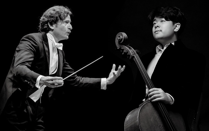 룩셈부르크 필하모닉 with 한재민 (왼쪽)지휘자 구스타보 히메노ⓒMarco Borggreve, (오른쪽)첼리스트 한재민ⓒShin Joong Kim