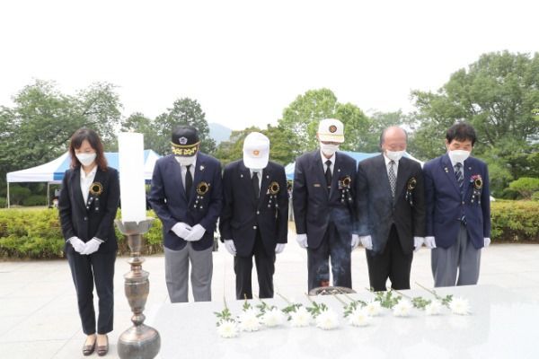 군에 따르면 제65회 현충일을 맞이하여 오전 10시 의령읍 호국공원에서 신정민 의령군수 권한대행, 조해진 국회의원, 손태영 의령군의회 의장, 기관단체장, 보훈단체 회원 등 50여 명이 참석한 가운데 추념식을 축소 거행했다.