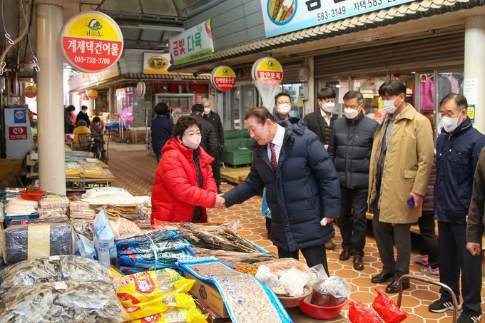 [경남도민뉴스] 조근제 함안군수는 민족 최대의 명절인 설을 앞두고 20일 김성수 NH농협은행 함안군지부장, 홍순기 가야전통시장상인회 회장, 정재숙 여성단체협의회장, 군 간부공무원 등과 함께 가야전통시장으로 민생현장 살피기에 나섰다.