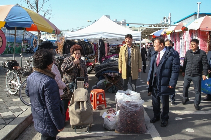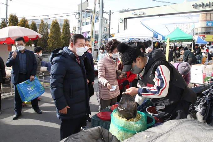 또한, 서민경제 침체 등으로 어려움을 겪고 있는 전통시장에 활력을 불어넣고자 시장을 방문한 군민들에게 전통시장 이용을 독려하는 한편 코로나19의 여파로 어려움을 겪고 있는 전통시장 상인들을 격려했다.