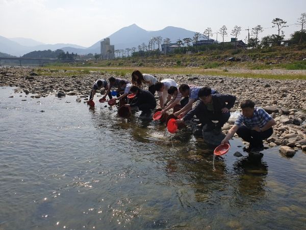군은 지난 9일 오후 경호강 일원에 뱀장어 치어 4000여마리를 방류했다고 10일 밝혔다.
