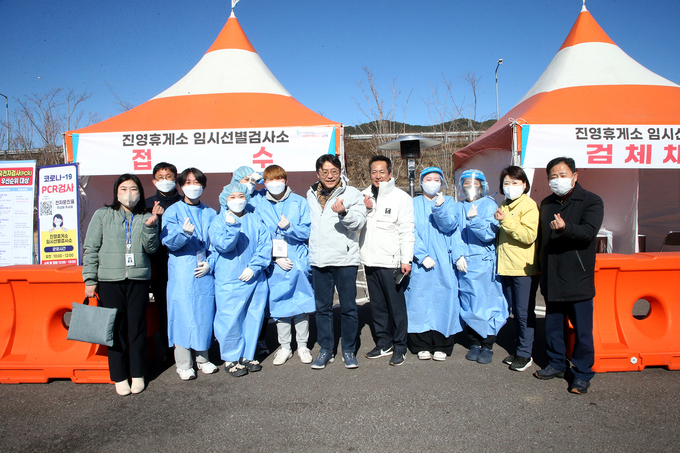 홍 시장은 이날 진영휴게소 임시선별검사소와 서부보건소 선별진료소, 김해보건소 선별진료소를 차례로 둘러보며 의료진과 방역 관계자들에게 간식과 함께 감사의 마음을 전했다.