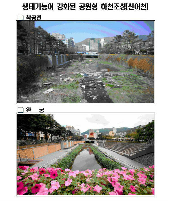 또한 주민들의 여가공간 확보를 위한 친수사업으로 추진하고 있는 생태하천복원사업 11지구, 고향의 강 조성사업 17지구, 생태하천조성사업 3지구 등을 조기에 완료하여 집중호우 시 재해예방은 물론 친수공간 조성을 통해 주민의 삶의 질을 향상하고 생활환경 개선에도 크게 기여할 계획이다.